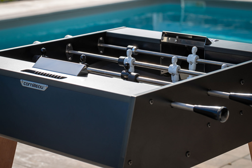 From the laminate game box to the stainless steel screws, from the exotic wood to the aluminum, all materials have been rigorously selected and tested to ensure their resistance to the elements, in order to offer you a foosball table that you can leave outside without any fear.